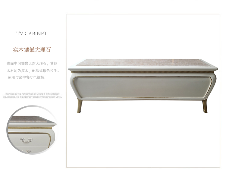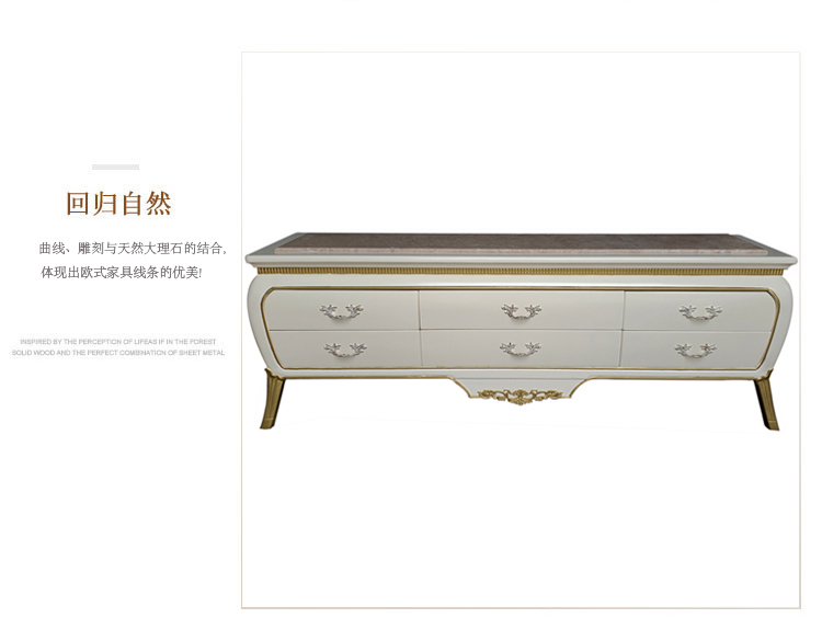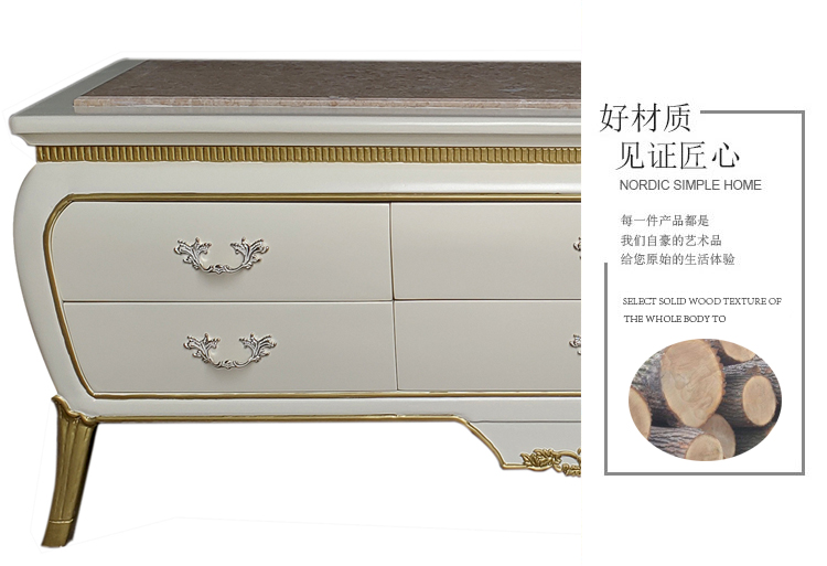 欧式实木镶嵌天然大理石面奶白色雕刻六屉电视柜边柜装饰柜