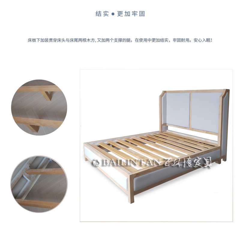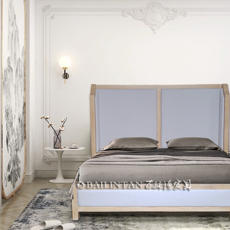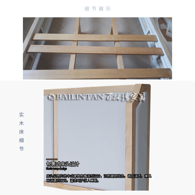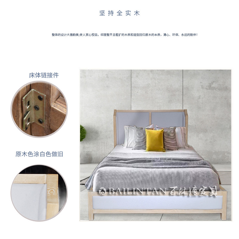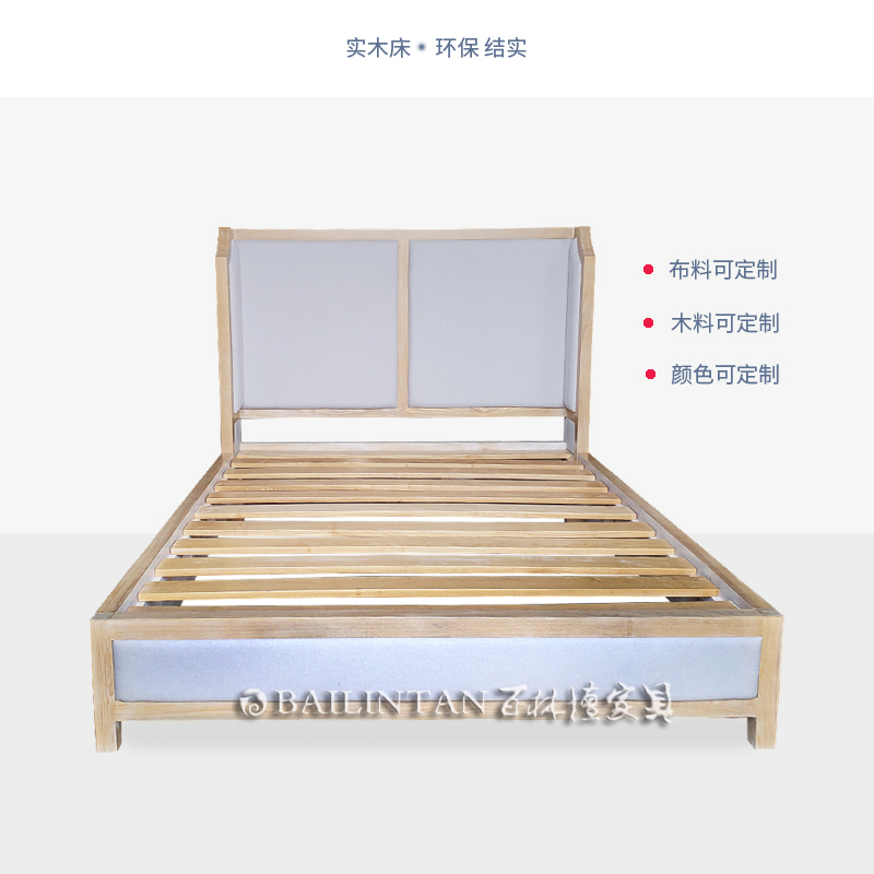 百林檀实木加布艺主卧轻奢风双人床1.5米1.8乡村美式定制拆装家具