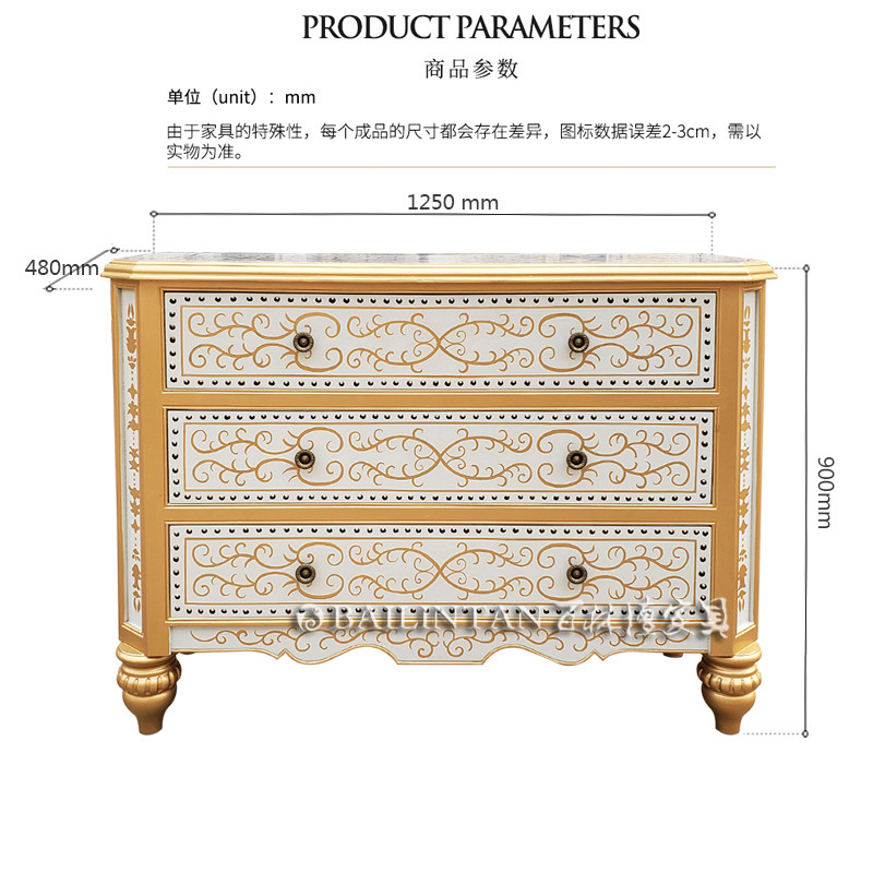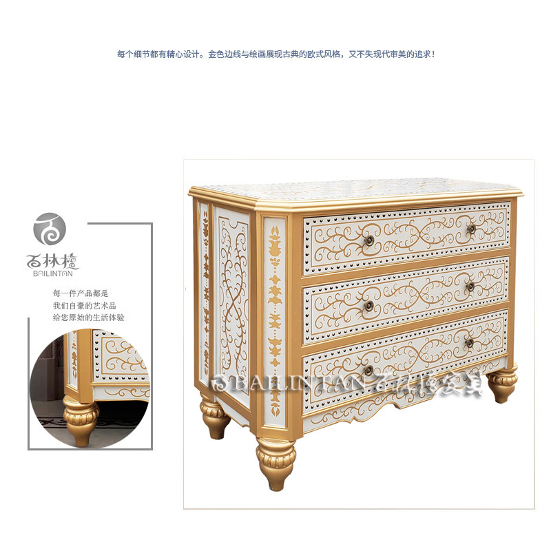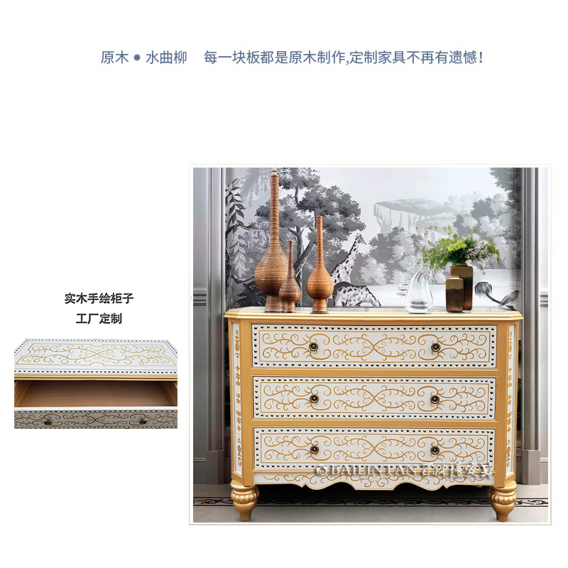 百林檀手绘玄关柜3屉柜宫廷轻奢实木装饰柜子水曲柳客厅定制家具