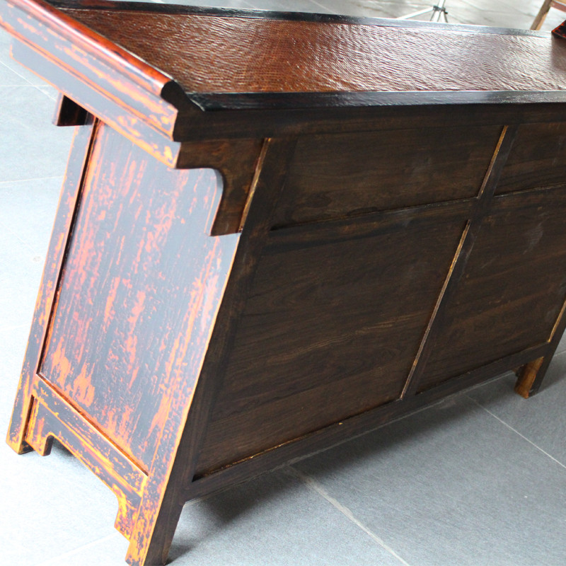 规格 /Specifications 长160mcm 宽400mm 高830mm 材质/Texture of material 榆木 席面 铜配件 工艺/Crafsmanship 榫卯工艺 颜色/Color 黑色 红色 可定做各种颜色 用途/Usage 橱柜 碗柜 餐边柜 供桌