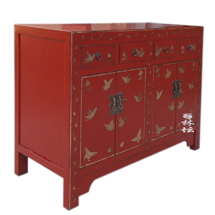 【尺寸】 长1100mm 宽450mm 高80m0Mm 【编号】 CBG80-30-100 【材质】 主料:老榆木 辅料:板材,内板实木 配件:铜配件 【特点】 整装运输; 手工彩绘。