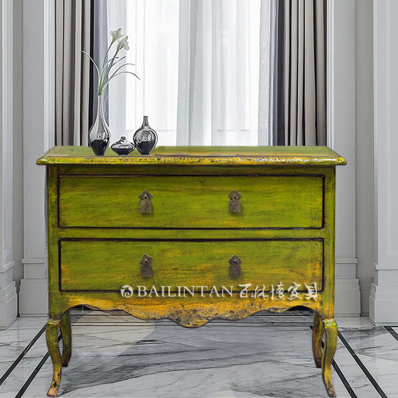 欧式玄关柜门厅柜复古做旧装饰柜子仿古抽屉2斗柜设计师定制家具