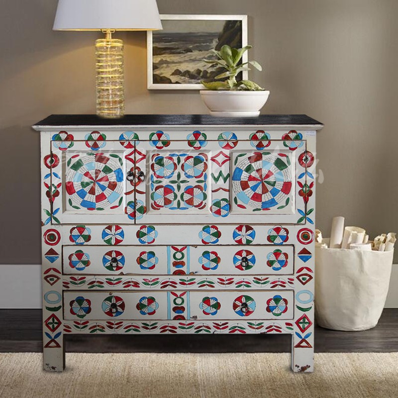实木创意餐边柜 彩绘仿古储物柜 印第安收纳柜 时尚家具实木斗柜