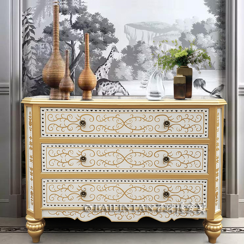 百林檀手绘玄关柜3屉柜宫廷轻奢实木装饰柜子水曲柳客厅定制家具