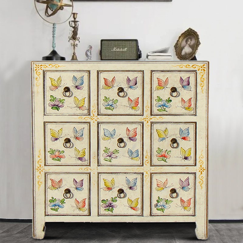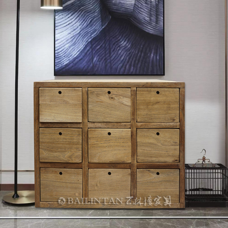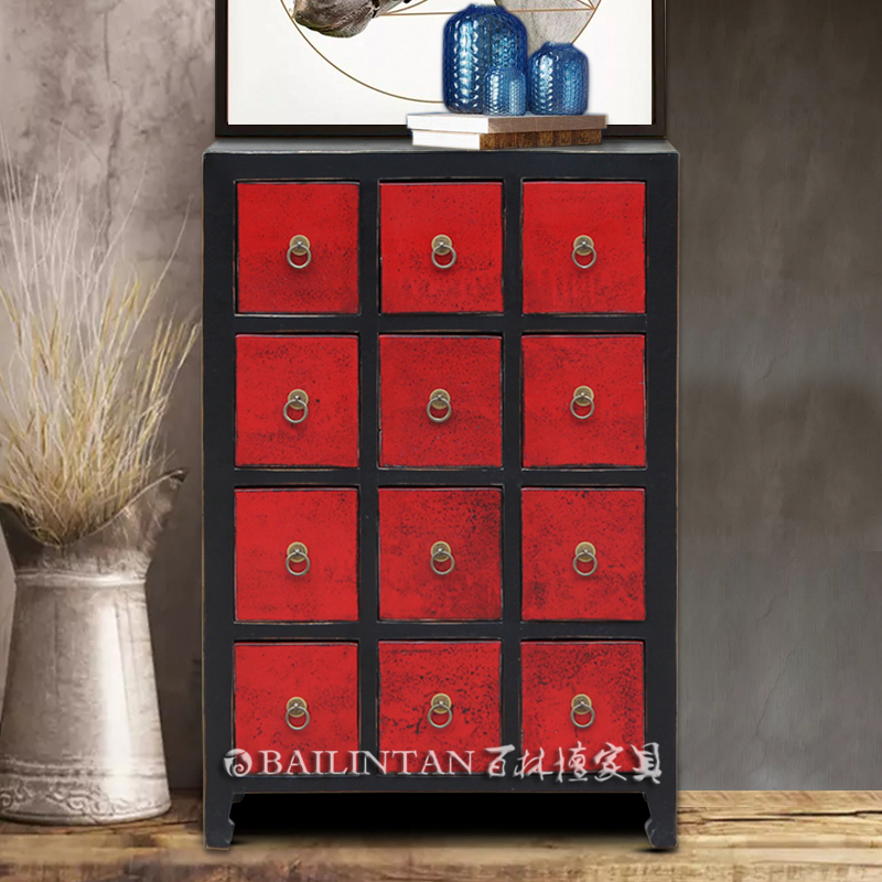 新古典复古做旧12斗柜 黑红抽屉柜 首饰收纳储物柜子 定制木家具