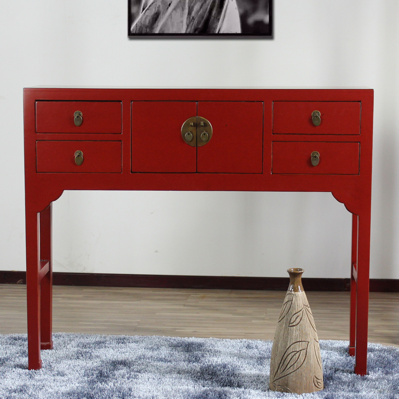 新古典彩绘漆画玄关台实木 酒店家具装饰柜玄关桌仿古做旧柜子