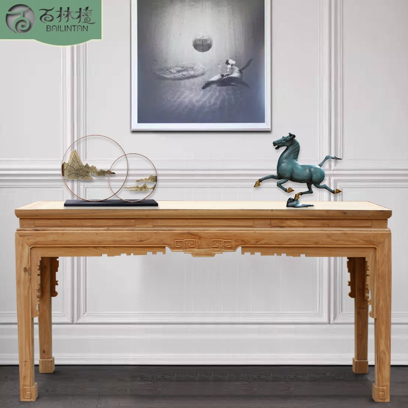 百林檀实木玄关台雕花瑞景柜老榆木装饰柜玄关桌子木家具工厂定做