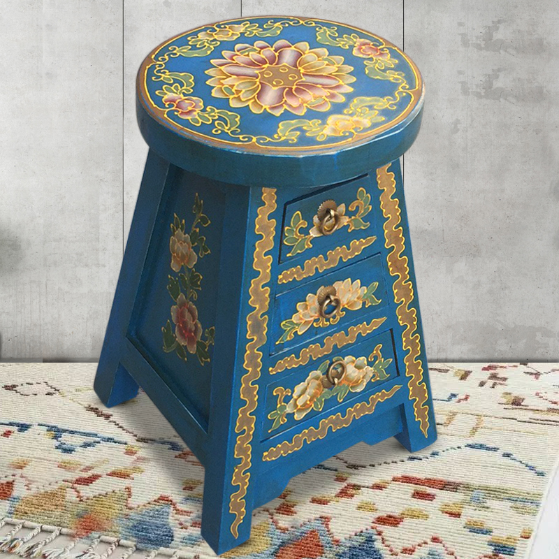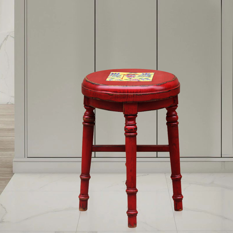 红色描金彩绘实木梳妆凳子圆凳 防古储物凳装饰凳子 创意木质家具