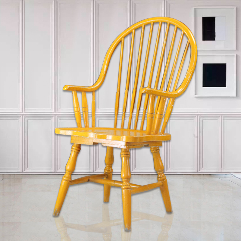 百林檀餐厅实木椅子餐椅酒店休闲高靠背带扶手北欧温莎孔雀椅仿旧